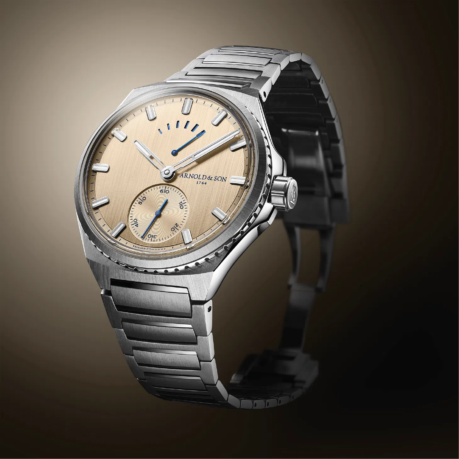 The caliber is lavished with the same high standard of finishes associated with Arnold & Son, such as chamfered bridges with the house’s specialty ‘Rayons de la Gloire’ motif. Like all its movements, the A&S6302 was entirely developed, produced, decorated, assembled, adjusted, and finished at the Manufacture in La Chaux-de-Fonds. This caliber features a large barrel and an oscillation frequency of 4 Hz, providing a 60-hour power reserve.