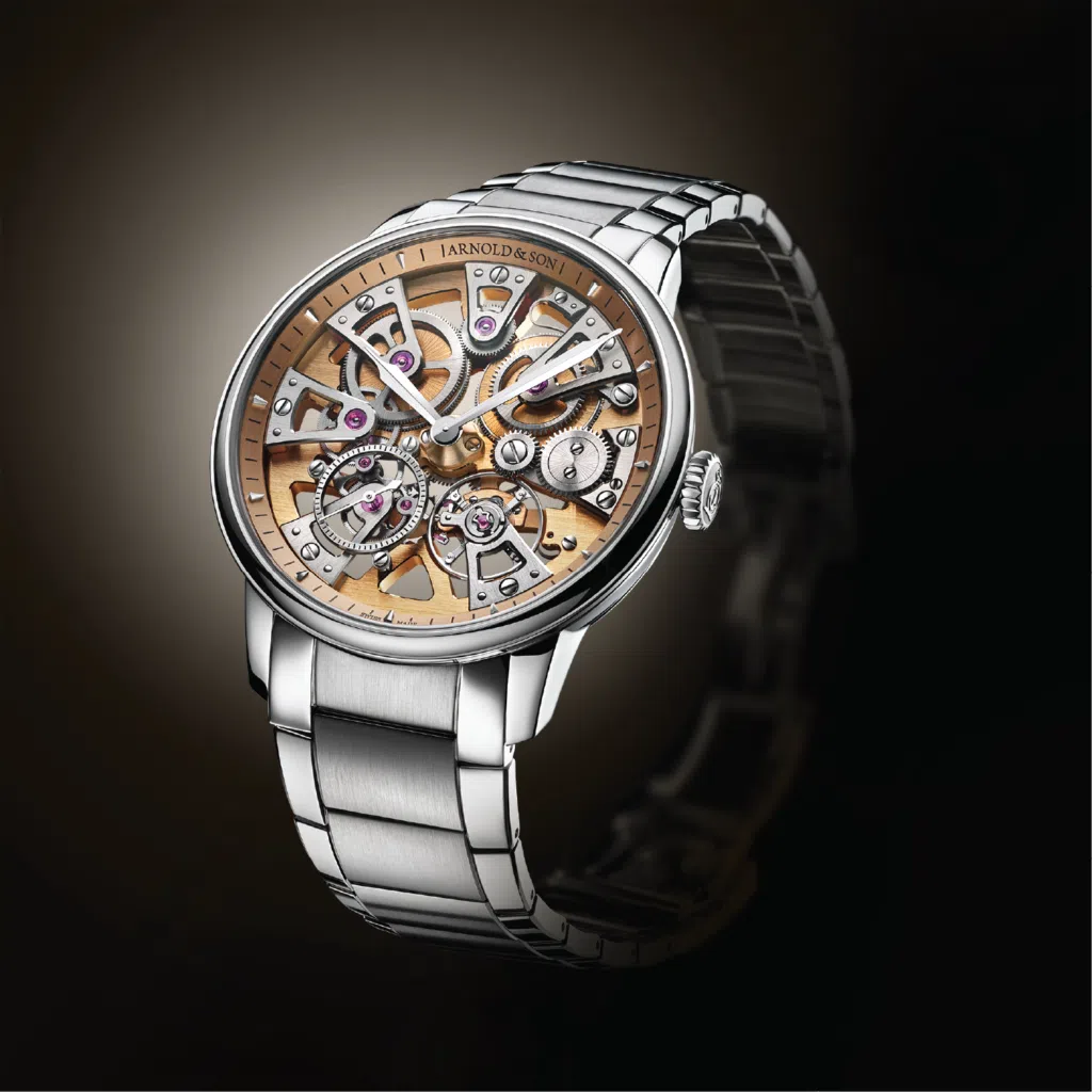 NEW YORK (October 17, 2024) – Arnold & Son has reworked its Nebula collection, giving it a more striking case with a universal diameter of 40 mm while retaining its remarkably finished movement and unique abundance of watchmaking tradition. Today, the Swiss watchmaker unveils two new Nebula versions – one with a rhodium-plated and black caliber, the other with golden accents. The new Arnold & Son Nebula models are set to make their official debut at the WatchTime New York event in Manhattan this weekend, taking place October 18-20, at Gotham Hall.