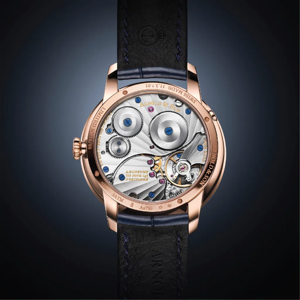 This is how these three dimensions – Astronomy, Chronometry and World Time – have come to be embodied in the House’s contemporary timepieces. Echoes of John Arnold’s inventions and preoccupations, these principles represent the foundations on which the Arnold & Son collections are based. The twenty-plus calibers presented to date by Arnold & Son have all been designed and developed in-house and produced by its sister manufacturer, La Joux-Perret in La Chaux-de-Fonds (Switzerland). This independence and creativity demonstrate the House’s ability to perpetuate John Arnold’s exceptional inventions.