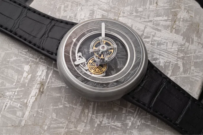 The KS 05 collection represents a new breed of luxury timepieces distinguished by a meticulously crafted case that equally balances functionality and aesthetic appeal. The unique KS 05 Black Meteorite case is made from Grade 5 titanium, a biocompatible material that surpasses stainless steel in terms of strength and durability, underlining Kross Studio’s commitment to using the most advanced materials in the industry.