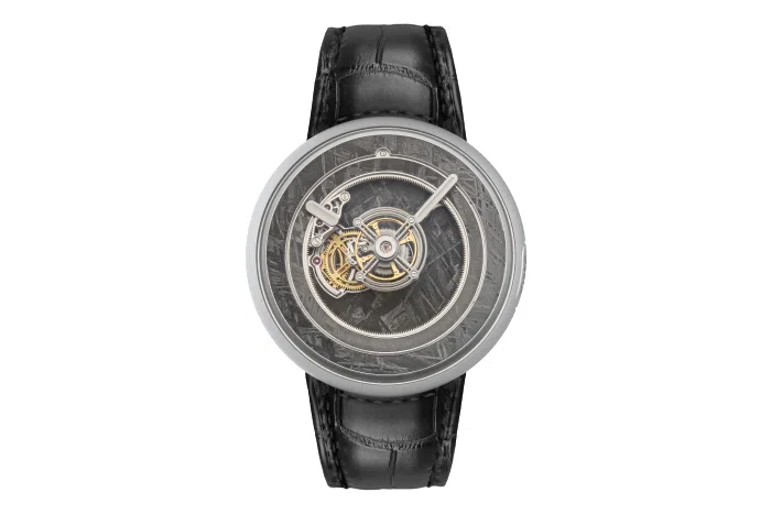 The outer dial, known as the rehaut, is affixed directly onto the case. Its design and position offer a seamless aesthetic transition from the case to the watch’s interior, drawing the eye towards its groundbreaking central floating tourbillon.