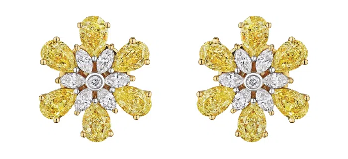 Leviev’s Sunlit Blossom Earrings turn heads with the unparalleled brilliance of 3.11 carats in natural yellow and white diamonds, set in 14 karat white gold.