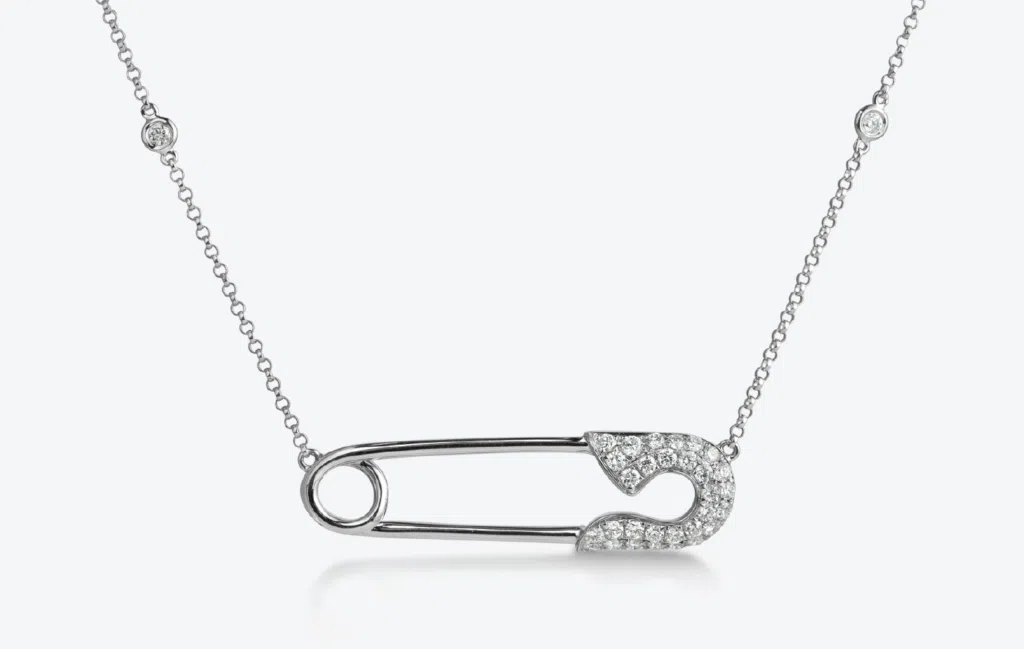 Leviev’s diamond pave safety pin necklace makes a thoughtful and whimsical Mother’s Day gift that is especially poignant for new mothers. Crafted in 18 karat white gold, this charming safety pin pendant features 0.54 carats of natural pavé set diamonds. The pendant is set within an 18” chain that features additional bezel-set diamond accents.