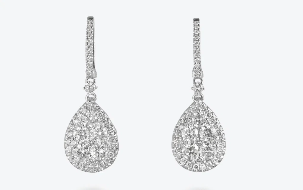 Scintillating and spectacular, these Leviev’s Pear Shape Cluster Diamond Drop Earrings make the perfect match for anyone seeking a truly stand-out Mother’s Day gift. The pear-shaped diamond drop earrings feature a cluster of natural round-brilliant cut diamonds, framed in a pave-set halo of diamonds, set in 18 karat white gold. These versatile leverback style diamond earrings offer outstanding brilliance and practical comfort wherever she goes, accenting her beauty by day or night.