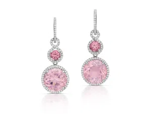 19.82 Carat Rose Quartz, Zircon, and Diamond Earrings