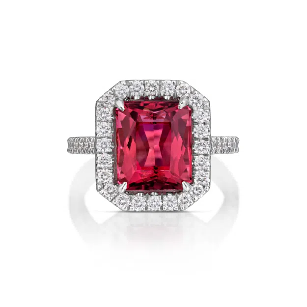 3.90 Carat Rubellite Tourmaline and Diamond Ring