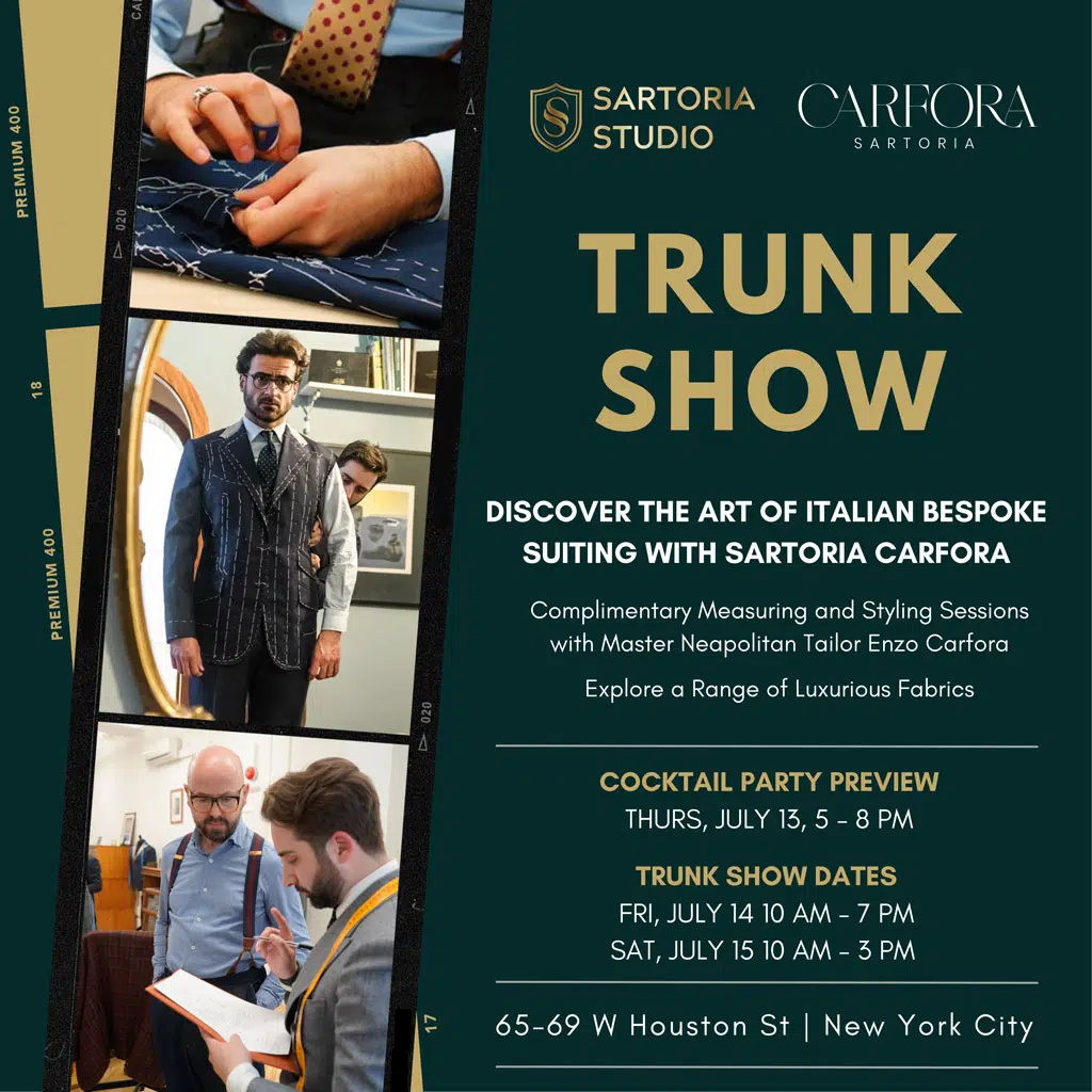 The Master Neapolitan Tailor Enzo Carfora is Coming to Soho’s Leading Haberdashery for a 3-day Trunk Show Event