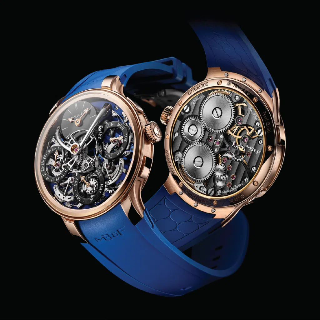 To celebrate the opening of the MB&F LAB in Silicon Valley with retail partner Stephen Silver, the series is joined by a limited edition of 18 pieces in 18K rose gold with an ocean blue dial plate. All editions feature a closely-fitted, integrated rubber strap for the smoothest wearing experience of any MB&F Machine ever.