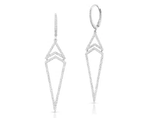 These openwork diamond drop earrings feature over two hundred round brilliant cut diamonds totaling 0.65 carats, set in 14-karat white gold.