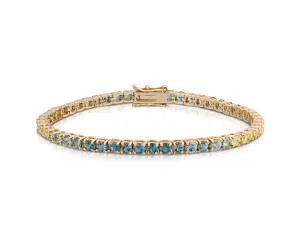 Stephen Silver explores the dazzling chromatic range of the sapphire gemstone and enlivens the classic line bracelet in this unique piece, which features an ombre selection of round brilliant cut sapphires in tones ranging from greenish blue to yellow.